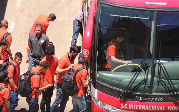 | Colorados embarcam no ônibus para deixar aeroporto (Foto: Tomás Hammes / GLOBOESPORTE.COM) |